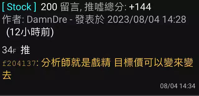 → joygo : 不是吧某人不是說80的時候看好150敦泰,然後說營收 09/08 15:09