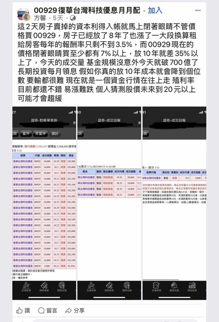 → H2 : 繼續租收租金,然後貸款出來再買00929,每個月的配 09/20 18:50