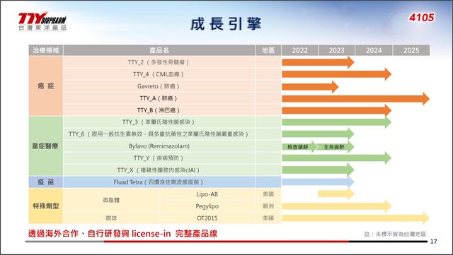 癌症治療是東洋最重要的產品領域,今年持續維持成長,今年