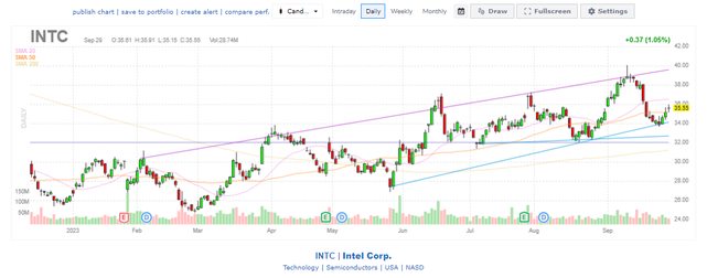 看起來目前INTC & PLTR成多頭走勢, BABA則是看起來像在盤整。