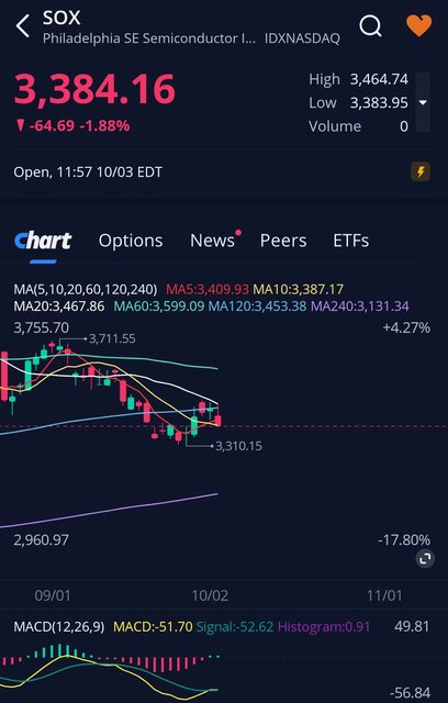 : : : 費半往3400靠攏 假如繼續跌破半年線 就是探3000的年線了.