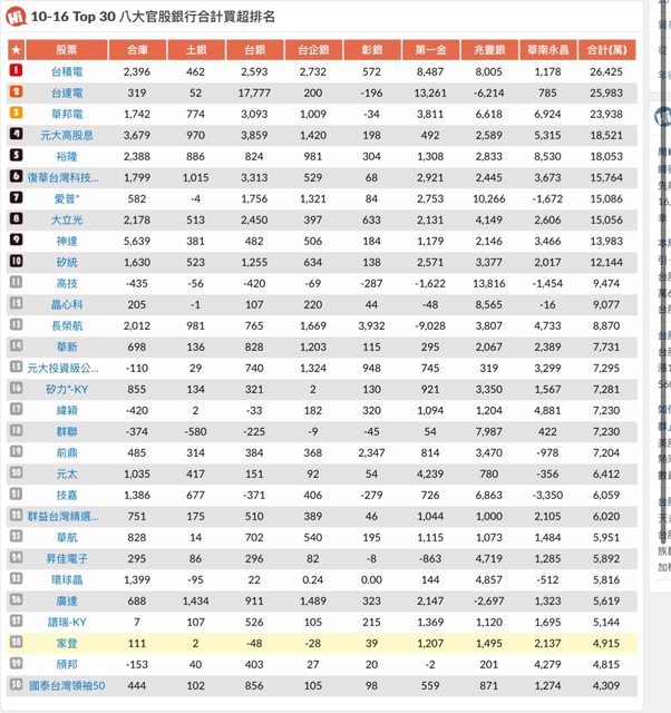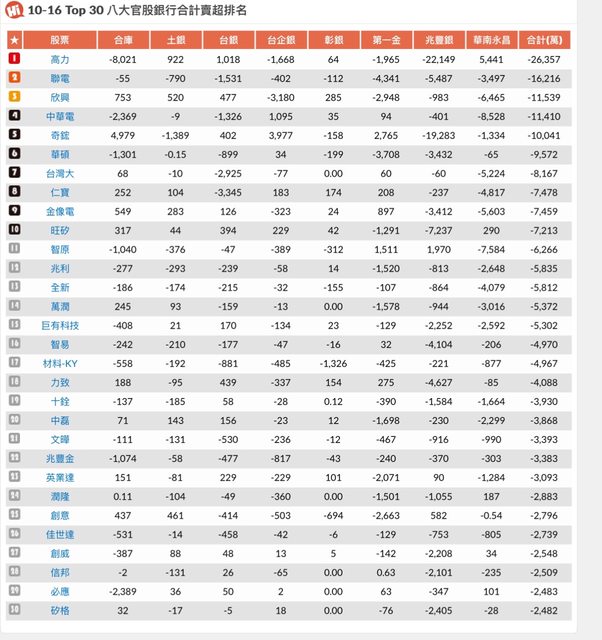 每天版上都會公怖 八大公股 官股買賣超