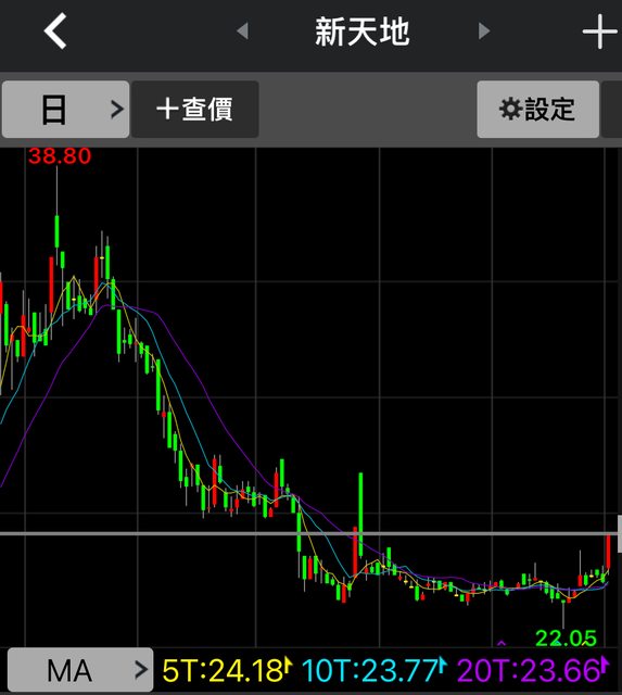 2-3: 新天地今年6月高點38.8跌下來超過44%,最近在22-25區間已經築底3個月買進不算