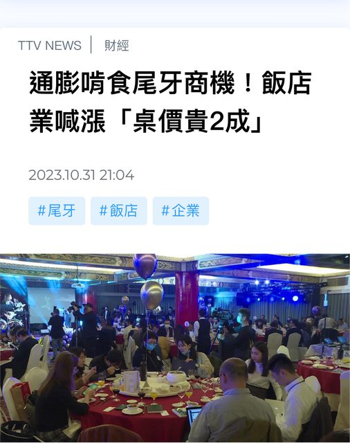 後回歸正常的婚宴,今年媒體還有提到辦桌因為通膨大致上都漲價1-2成,預計12、1月營