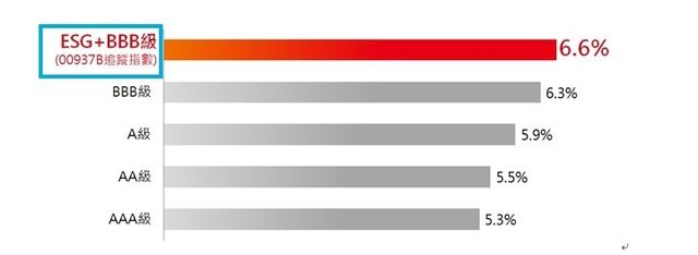估,各評級投資級公司債中又以ESG BBB級公司債最佳,近6.6%。再者,隨著升息接近尾