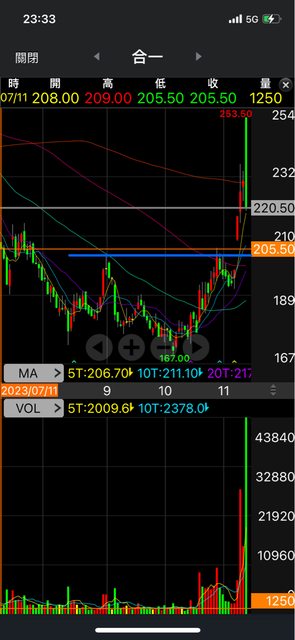 : 然後漲到220再一次爆大量