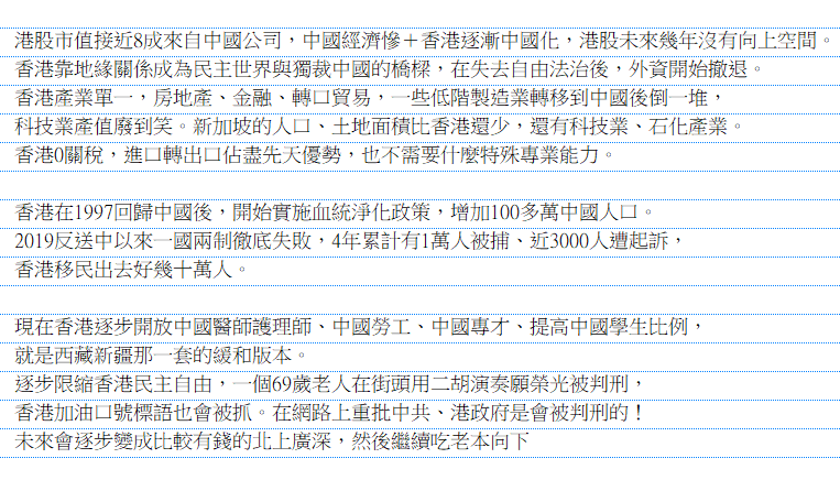→ likeyousmile: 香港上市的是中國企業,怎麼不是除中國人均?11/28 15:53