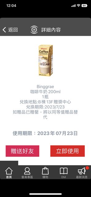 物品名稱:咖啡牛奶兌換