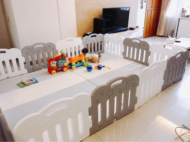 14片圍欄可以圍住兩大片地墊