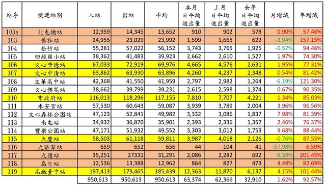 5、本文參考 Sunny821210、TaiwanXDman板友高雄捷運各站旅運量的發文格式。
