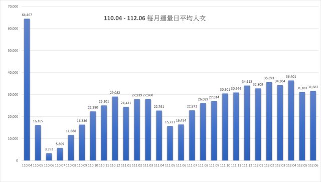 110年4月後每月運量日平均人次統計: