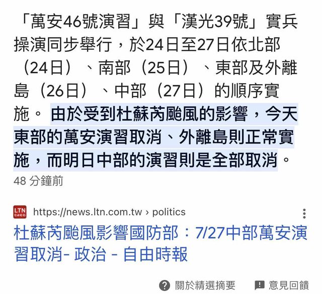 推 fspmlp : 主要是因應災防整備才取消,不然萬安國軍其實蠻忙 07/26 20:00