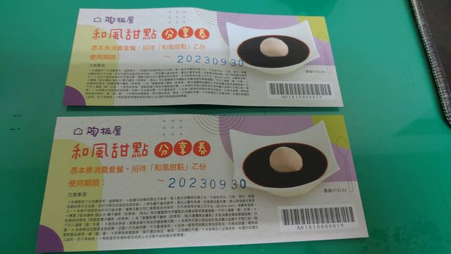 陶板屋和風甜點分享券兩張