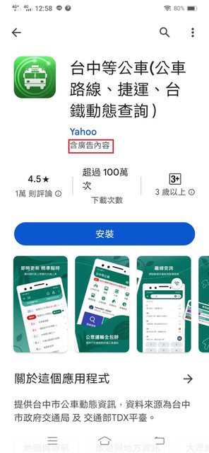 如果真的還是需求手機款APP,建議無廣告的"台中搭公車"(圖片是藍色車身),簡易好用, 還可以查詢昨日或上禮拜的發車時間。