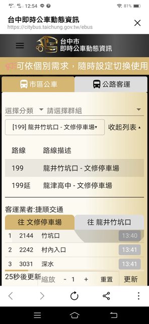 輸入你要查詢的公車號碼,如199。