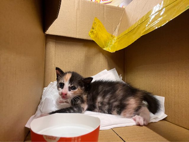 國光路和仁和路口的全聯有隻超可愛幼貓在大馬路上,感覺像是被人弄掉的(?