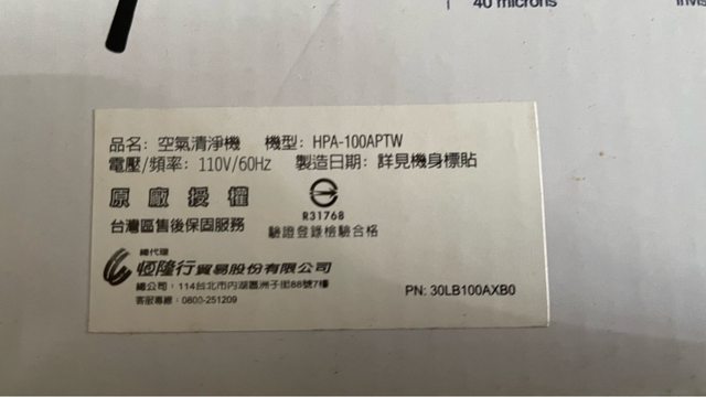 物品:美國 Honeywell 抗敏系列空氣清淨機 HPA-100APTW