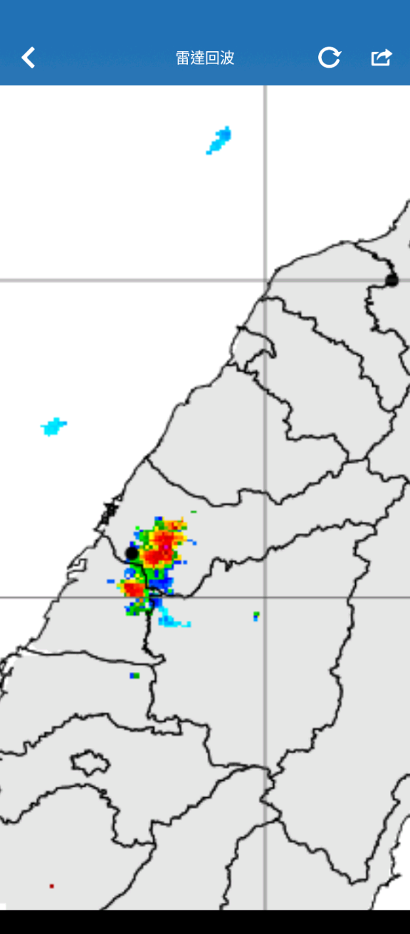 推 aqn23520 : 我這邊降雨雷達有一小塊紅色08/25 21:59