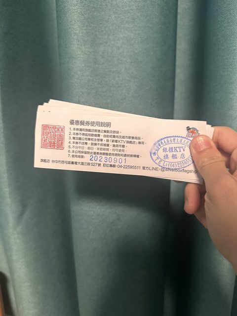 物品說明:使用期限到9/1,能在中港銀櫃旗艦店單點餐飲800元,無法折抵唱歌消費及酒錢