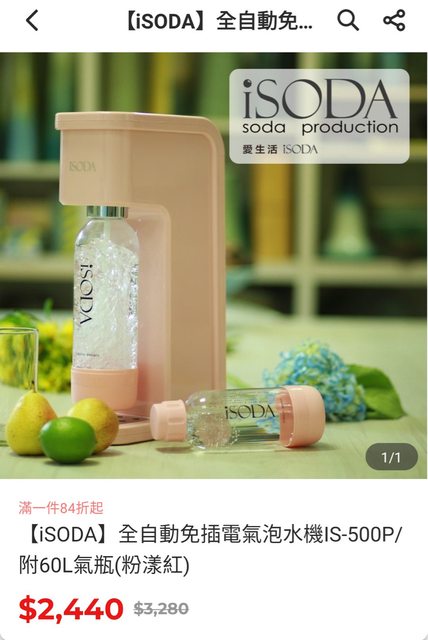 全新ISODA氣泡水機,免插電免電池(附氣瓶、0.5L及1L專用瓶及氣閥保護套)