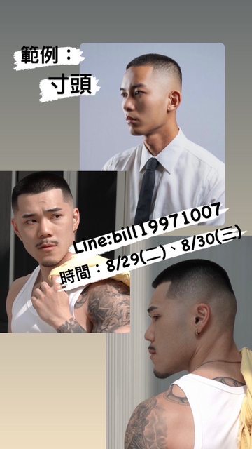 時間:8/29(二)、8/30(三)後梳油頭、寸頭