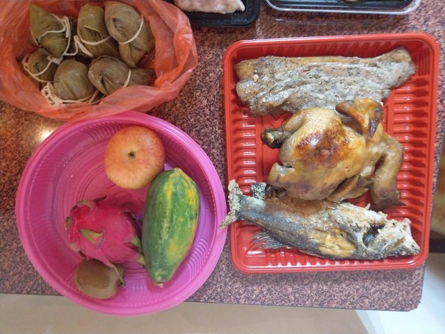 物品名稱:今天拜拜的三牲滷味粽子水果