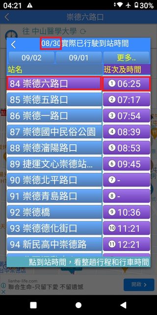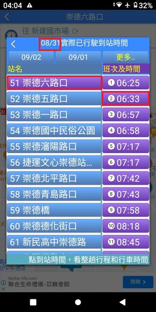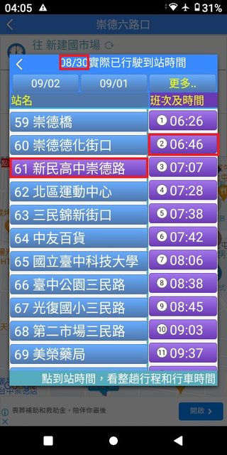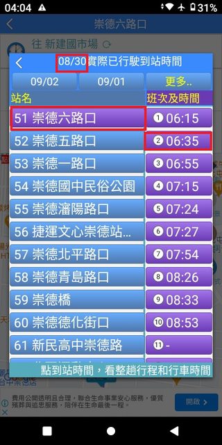 但在35~43分這之間,卻忽視錯過了發車點近在咫尺且6:40穩定發車的132號。