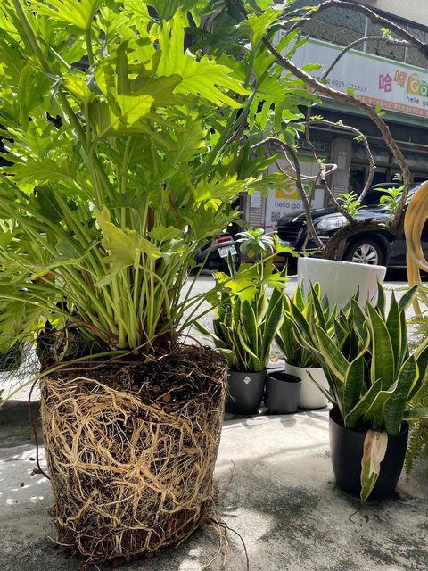 物品名稱:蠻大盆的蔓綠絨、虎尾蘭、白水木