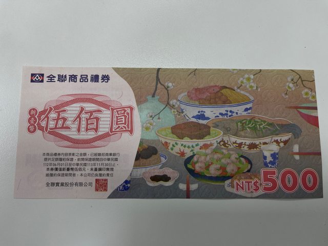 商品名稱:全聯 禮券$4,000(面額500元*7張、100元*5張)