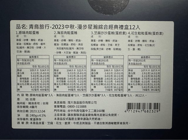 青鳥旅行中秋禮盒 還有一個(原價600,售400)
