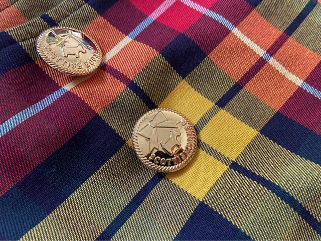 38號 肩38 胸46 長68.5(公分) 購於新光三越 僅短暫穿過1、2次逛百貨公司 近全新 這是有薄鋪棉內裡的風衣 所以更實穿 很適合台中的天氣 長度有遮蓋過臀部 9.Kinloch anderson 上衣 & Scottish house 格紋短褲 1980含全家運費