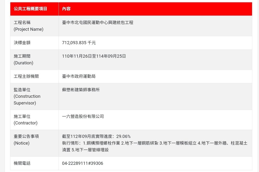 推 fspmlp : 北屯國民運動中心的完工日期,最近一次市府在研考10/13 11:11