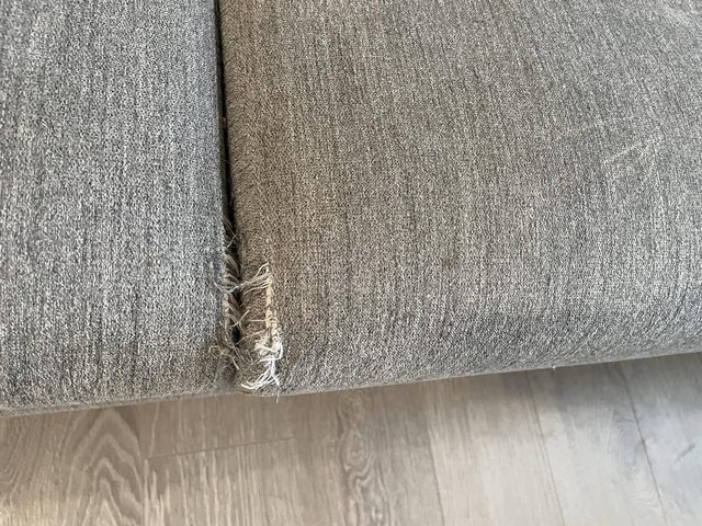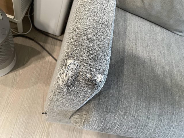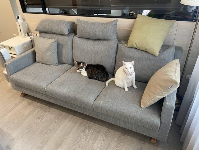 兩側扶手與中間坐墊有貓抓破, 但只有布料本身破損, 沙發結構沒問題