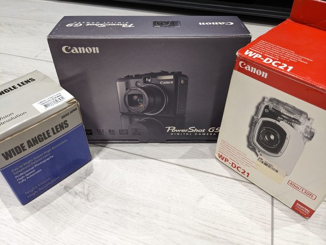 4.【CANON】佳能G9類單眼相機+58MM廣角鏡+潛水盒WP-DC21, 100元,已售出