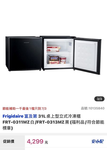 標題[交易] 富及第 桌上型冷凍櫃 31L
