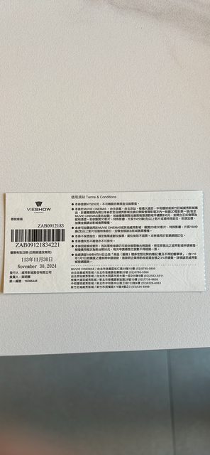 物品:威秀電影票10張 (效期:113/11/30)