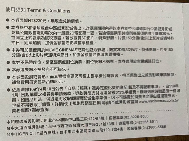 【商品名稱】:威秀影城電影票