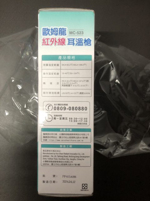 物品:歐姆龍耳溫槍(MC-523)
