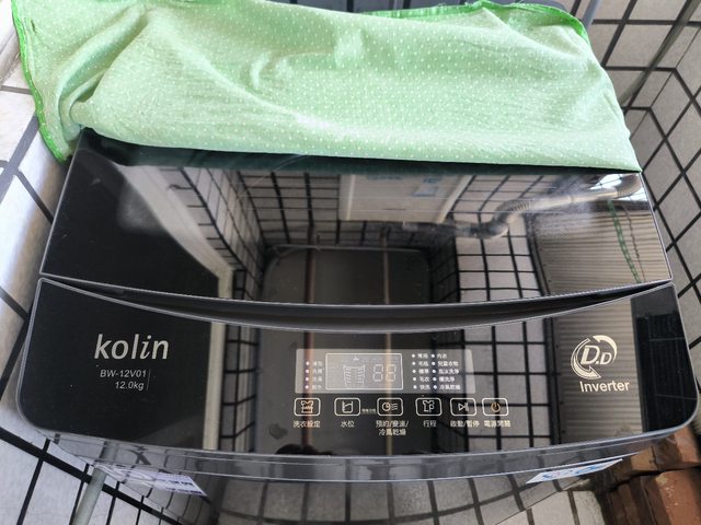 有洗衣機跟另一個曬衣架。