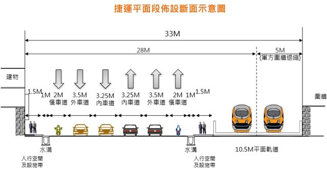 ▲圖 3、協調後空軍基地旁橘線平面段斷面圖 2023-02-10