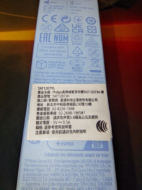 廠牌型號: PHILIPS 飛利浦TWS真無線藍牙耳機