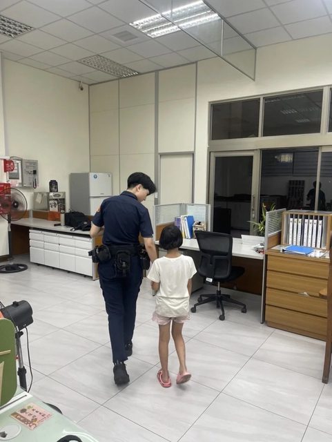台中市一名7歲女童上月底被人發現在公園遊蕩,第五警分局女警廖羿甄到場協助。圖/ 第五警分局提供 https://i.imgur.com/jdkESku.jpeg
