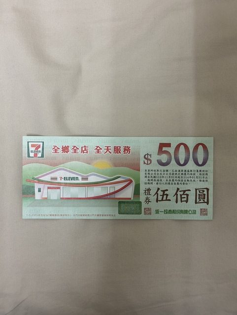 商品:統一超商五百元禮券