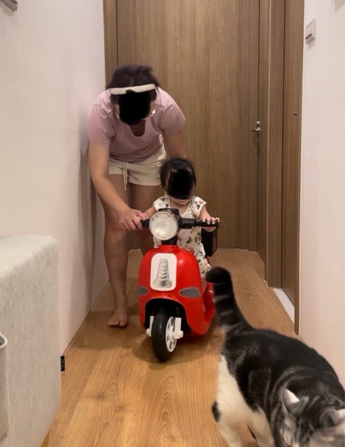 然後女兒只有七八個月根本不能玩