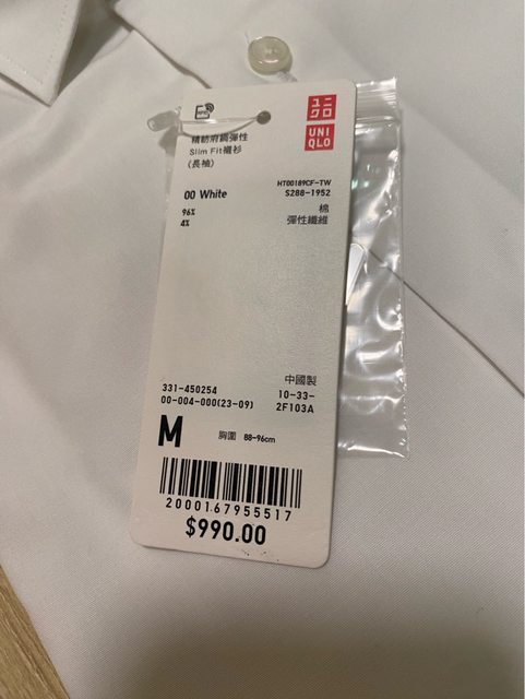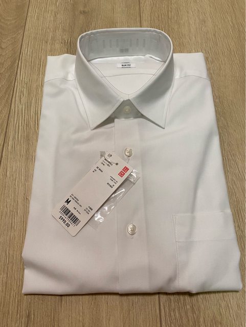 Uniqlo 男 全新白襯衫 / 580元 尺寸M 純棉 防皺 合身款 全新品 吊牌未拆