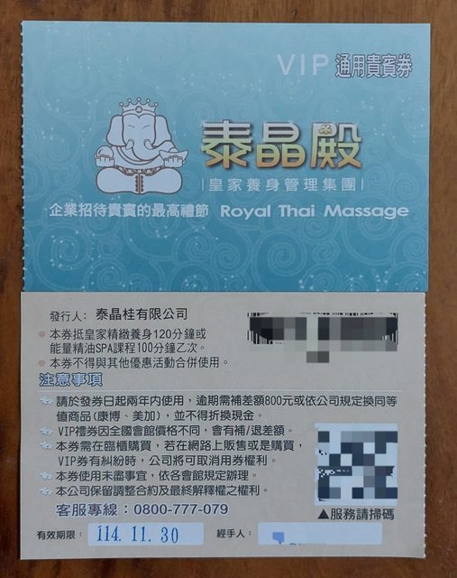 標題[交易] 北區/泰晶殿按摩卷