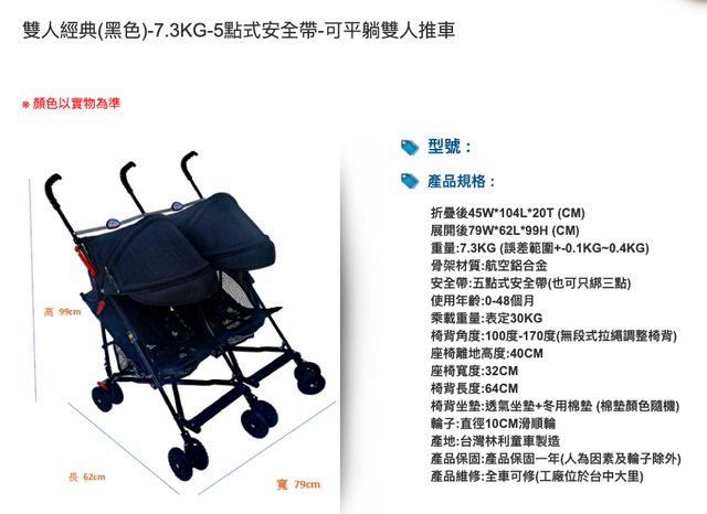 商品名稱:林利雙人推車【可平躺、可直接進電梯】 圖片參考: