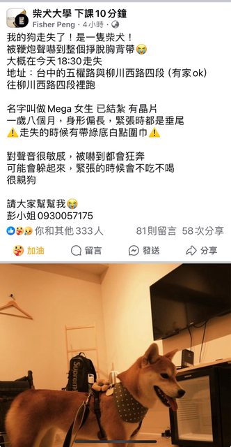 標題[協尋] 走失/東興市場/柴犬