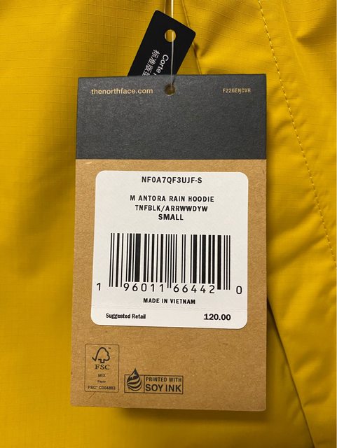 出售物品1: 全新男款The North Face Antora防水外套 - S號 售價:2400