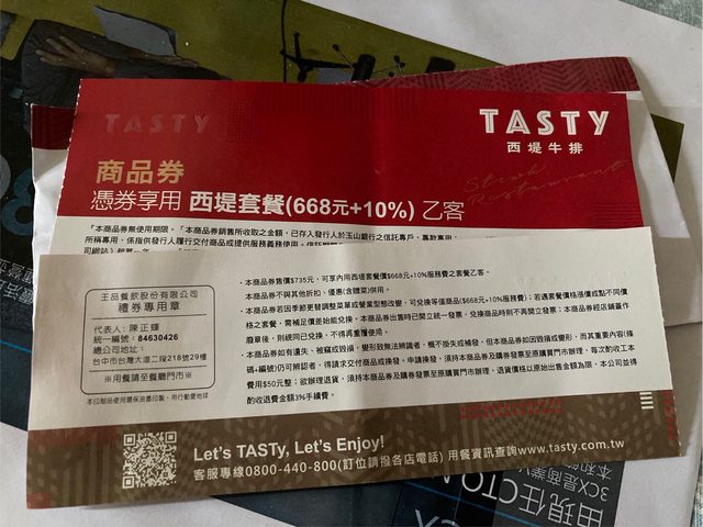 西堤餐券2張 1張630 2張1260